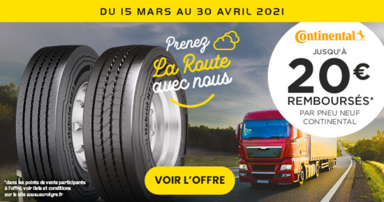 Du 15 Mars au 30 Avril 2021, pour l’achat de pneumatiques Poids Lourd Continental recevez un remboursement à hauteur de […]